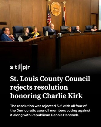 【圣路易时报讯】圣路易斯郡议会2025年9月16日就一项颇具争议的决议案进行了投票表决,该议案由共和党议员马克·哈德(Mark Harder)提出,内容是致敬保守派评论员兼 Turning Point USA 创办人查理·柯克(Charlie Kirk)。经过数小时的讨论与公众评论环节后,议会最终以 5 比 2 的票数否决了这项提案。