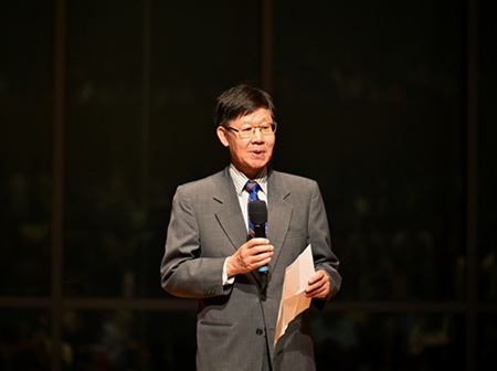 本次晚会主要承办机构,UMSL蒋彦仕讲座教授基金的冯鸿璣教授致欢迎辞。冯教授君子儒雅,特别介绍和感谢云南艺术学院十位师生如何在短短几天内昼夜兼程,跨越山海,为我们带来这台难得的印象云南。