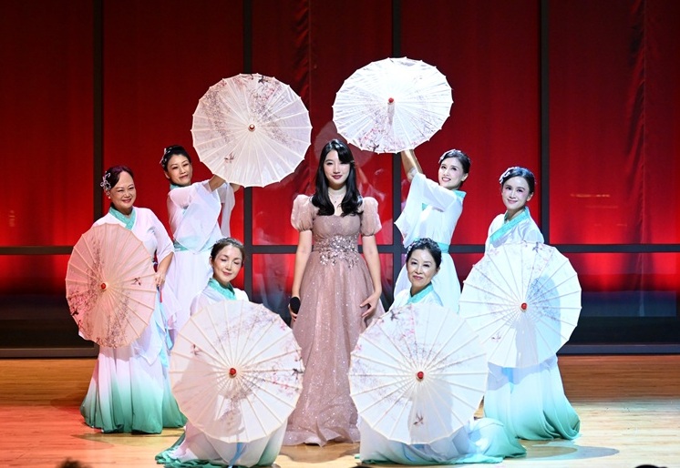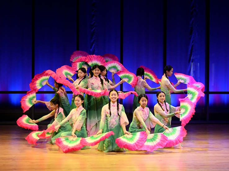 本地也有几个节目共襄盛事。赵玺老师指导的舞蹈《茉莉》,付微微老师指导的《盛世欢歌》,密苏里大学圣路易斯分校学生王涵的女声独唱。从节目效果看得出老师们专业又精心,学生们努力又自信。与专业团队相比,本地节目重在参与,胜在亲切。对这些平日里是各行业专才、在校学生的舞蹈爱好者的表演,观众报以最鼓励包容的欢呼与掌声。