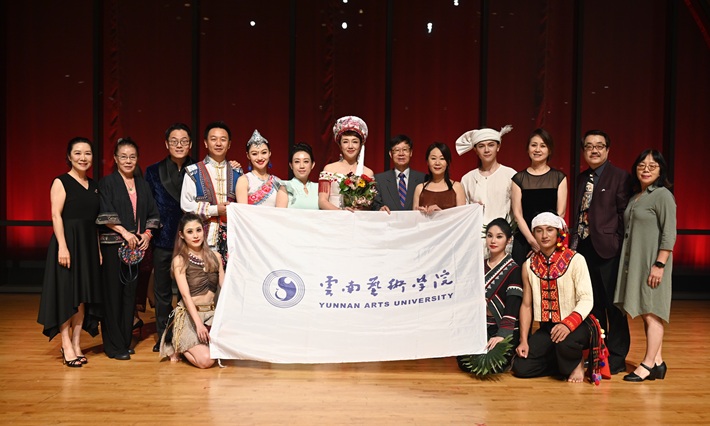云南艺术学院的歌、舞、器乐演奏包罗了云南彝、傣、佤 、藏、 纳西等民族生活原型,展现出天地自然,人文情怀,生命礼赞。当晚在场的每一位观众,都最直观见证他们身心合一的激情演绎:那么美,那么帅,那么活力四射,完全看不到时差的影子。加上精美的民族服装和饰物,其艺术张力带给观众的震撼是视觉的,情绪的,心灵的。观众仿佛看到了一座活动的云南各民族歌舞器乐艺术博物馆浓缩版。在他们的精湛表演面前,语言文字显得苍白和多余。