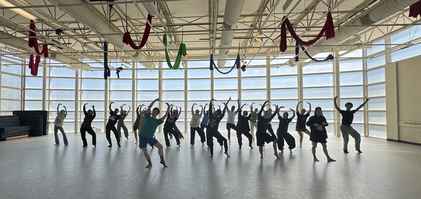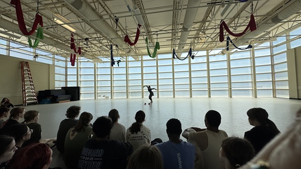 在宽敞明亮的教室里,韦伯斯特大学舞蹈专业的学生们以一场现代舞热身展示欢迎远道而来的客人。随后,系主任 Maggi Dueker 致欢迎辞,并详细介绍了舞蹈系的专业方向、学生概况以及学习与训练内容。她耐心解答了云艺学生关心的问题:每天几节课?各年级的学习重点是什么?……互动气氛亲切而热烈。