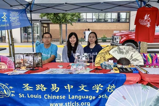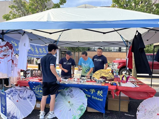 这一整天,圣路易中文学校让Rolla的居民近距离领略了中华文化的多彩与深厚。不仅如此,学校董事会还派出小分队准备了文化展台,向Rolla观众展示了中国刺绣,书法,手工剪纸,精美团扇纸伞等中华特有的文化,小展台物品琳琅满目,五彩缤纷,吸引了众多观众驻足观赏。