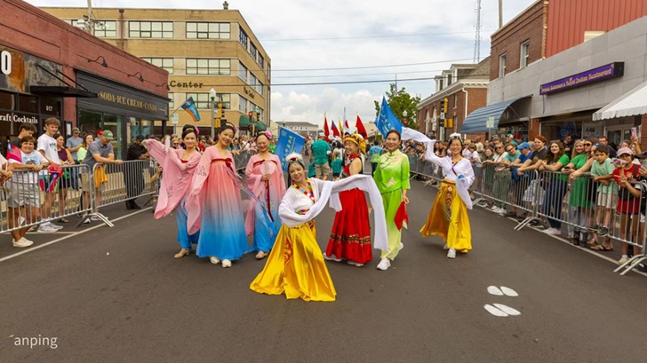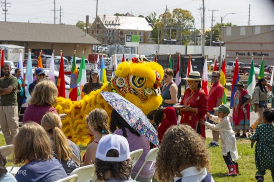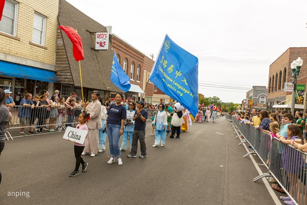 盛典首先从声势浩大的多国巡游开始。 圣路易中文学校的师生和家长们手举五星红旗与校旗,身穿汉服和各类民族服饰,笑容灿烂地向街道两旁的观众挥手致意。游行队伍绵延数条街,人山人海的观众高声欢呼,与来自世界各地的团队一起,将Rolla的街道变成了欢乐的海洋。