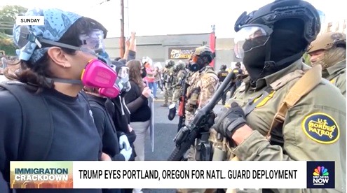 波特兰多年来持续爆发针对美国移民与海关执法局(ICE)设施的夜间抗议活动。部分示威者与执法人员之间的对峙屡有升级,催泪瓦斯、拘捕与财产损坏事件时有发生。特朗普政府将这些事件定性为“暴乱”和“对联邦机构的持续威胁”,以此为依据宣布联邦干预行动。9月27日,特朗普在社交媒体上表示,将调动国民警卫队“恢复秩序、保护联邦资产”。翌日,他签署命令,将约200名俄勒冈州国民警卫队成员联邦化,计划未经州长批准直接部署波特兰。