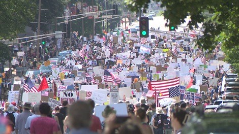 这波示威中,华盛顿特区更封锁主要街道,游行至国会山前,展现出强烈的民主意志。纽约时代广场聚集十万示威者,呼喊口号「没有国王」、「民主不是君主制」,现场秩序良好,展示和平争取民主的决心。在2025年10月18日全美抗议活动中,除了华盛顿特区封锁主要街道、游行至国会山,以及纽约时代广场聚集十万示威者外,芝加哥、圣地牙哥、奥斯汀、波士顿、西雅图等主要城市也出现大规模示威,参与人数估计达700万,遍布全美2700多个城市。示威者呼喊「不要国王」、「民主不是君主制」,并穿戴充气青蛙、恐龙等服装表达讽刺与抗议。整体活动秩序良好,展现民众对民主价值的坚持及对政府政策的强烈反对。