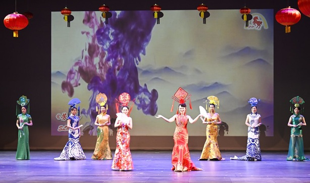 现代中文学校旗袍秀《芳华》在典雅音乐中徐徐展开,演员们步履从容、姿态优雅,展现东方女性的端庄气质。旗袍流畅的线条与含蓄典雅的气质,生动体现中华服饰文化的独特魅力,古典与现代交融的审美意境令人赞叹。