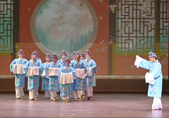 Lindenwood University带来的《梨园心语》为戏曲水袖群舞。舞者们虽然接触中华文化时间不久,但是对展示出高超的抛、甩、收、绕等技法,织就出如云似水的舞台画面,动静相生,呈现中国戏曲典雅庄重的艺术气质。