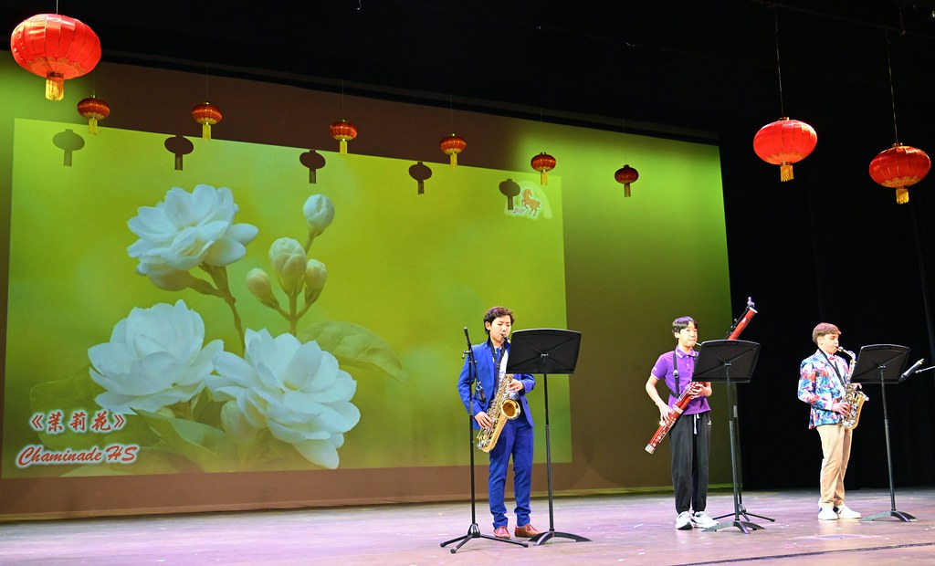 由Chaminade College Preparatory School乐队带来的爵士乐《茉莉花》,这是将传统的民乐以西方爵士的形式演奏出来,表现形式别具一格,也令观众拍手称赞。