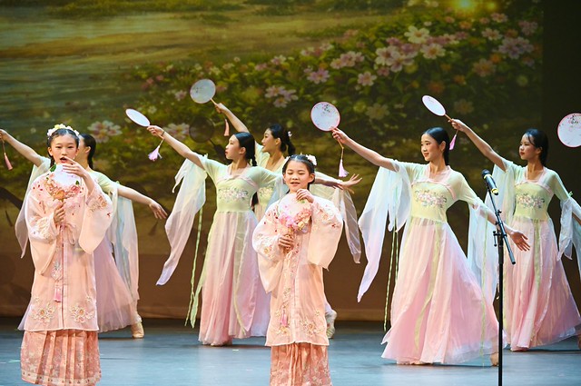 现代中文学校带来的《行香子·春晓》则在童真与古韵交融中呈现诗意画卷。孩子们以清新纯净的歌声与灵动优雅的舞姿,将古典诗词的自然意境与春日生机巧妙融合,营造出古韵悠然、生机盎然的艺术画卷。清新灵动的表演赢得观众阵阵掌声。