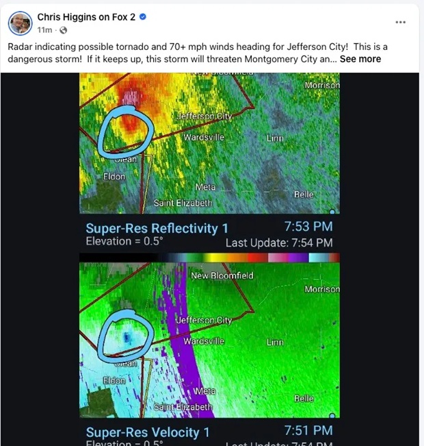 根據美國國家氣象局以及當地電視台最新氣象模型與雷達分析,聖路易地區目前正處於風暴系統的核心路徑上,屬於最高等級的高風險區。氣象條件顯示,大氣極度不穩定,低層暖濕氣流與強烈風切變交互作用,極可能在傍晚至深夜期間引發多個強烈對流風暴,甚至出現龍捲風群爆發的情況。專家警告,若龍捲風形成,強度可能達到EF-2或以上,風速足以摧毀房屋結構並造成廣泛破壞。
